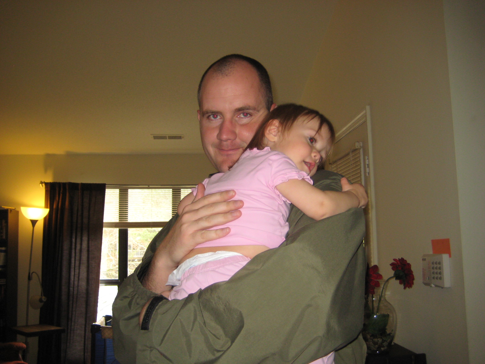 And Daddy’s newest little cuddle bug; she hurries to him every time he comes home for lunch.