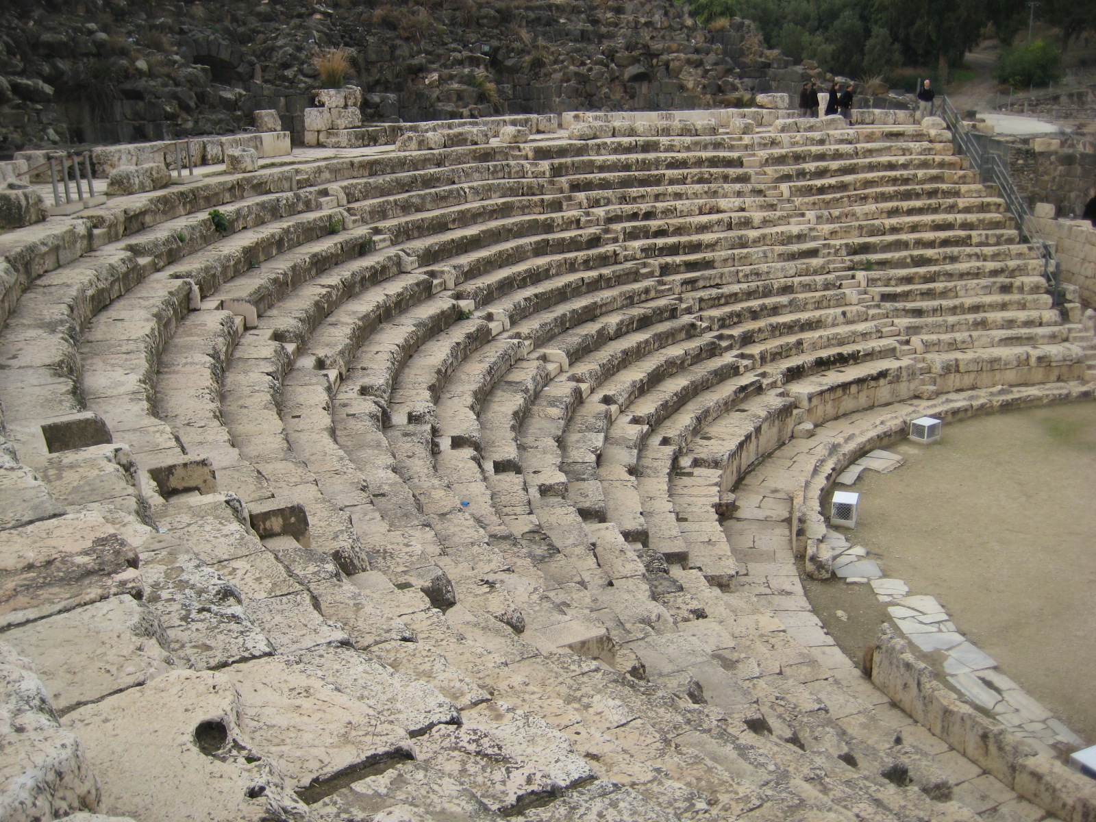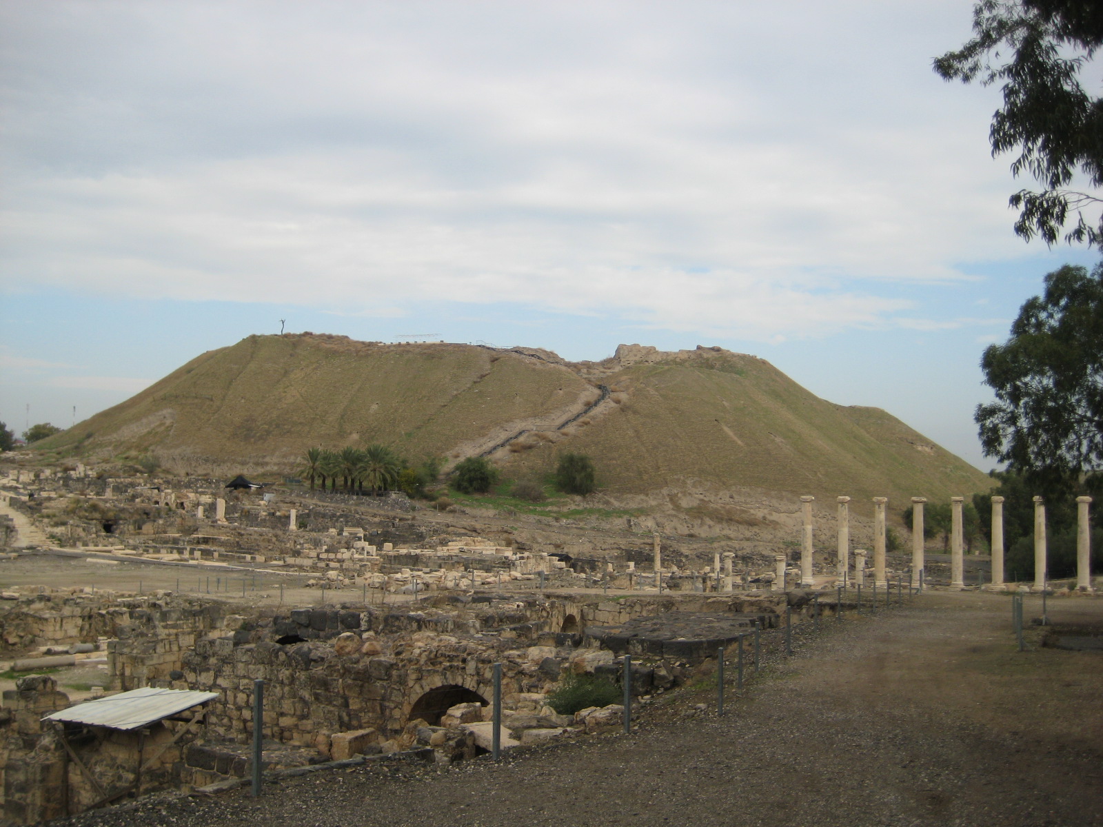 Beit She’an; this city is important because it illustrates the Romanization of the Jews at the time of Jesus. Seen here the “Cardo” or main street.Remains from the earthquake at Beit She’anTheater at Beit She’anViewing the old city of Beit She’an; Saul’s body was hung in disgrace on this hill.