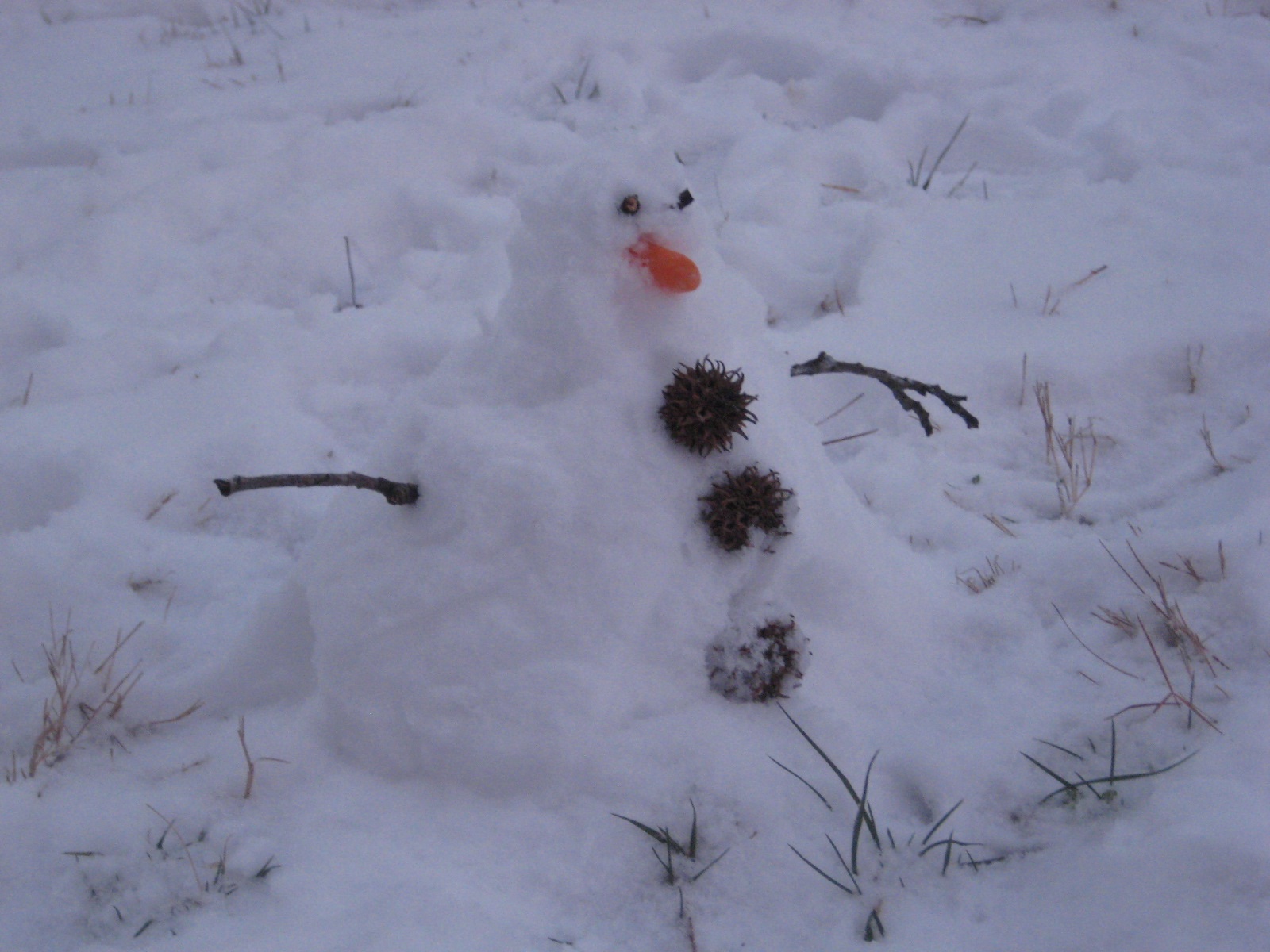 Olympics 2026, here we come! = )Making their first snowman with whatever they could find. No comments on his figure.