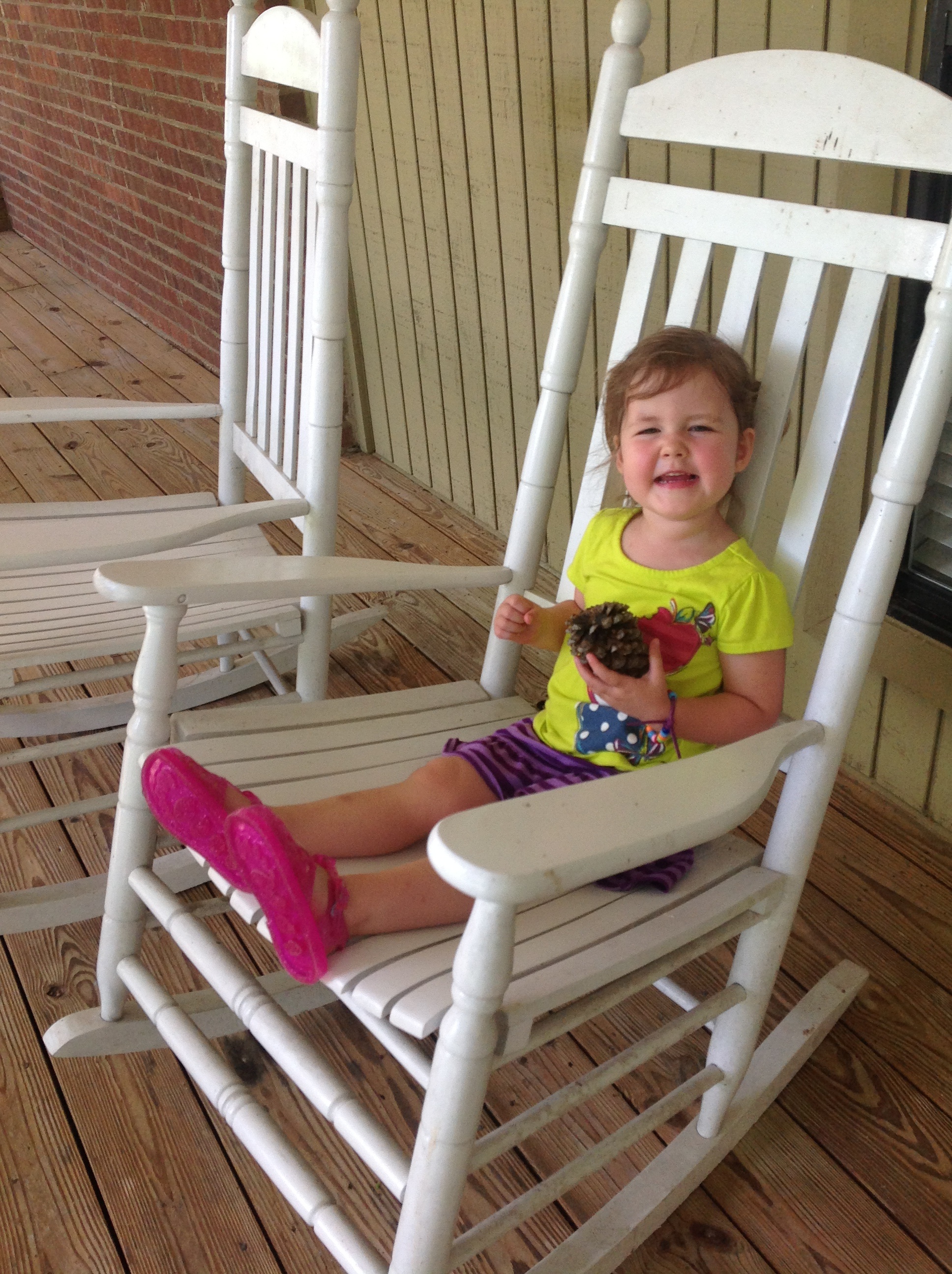 The girls had literally made a fence around the bag. “We put all the rocking chairs and ottomans around it so we would make sure we didn’t touch it, Mommy!”