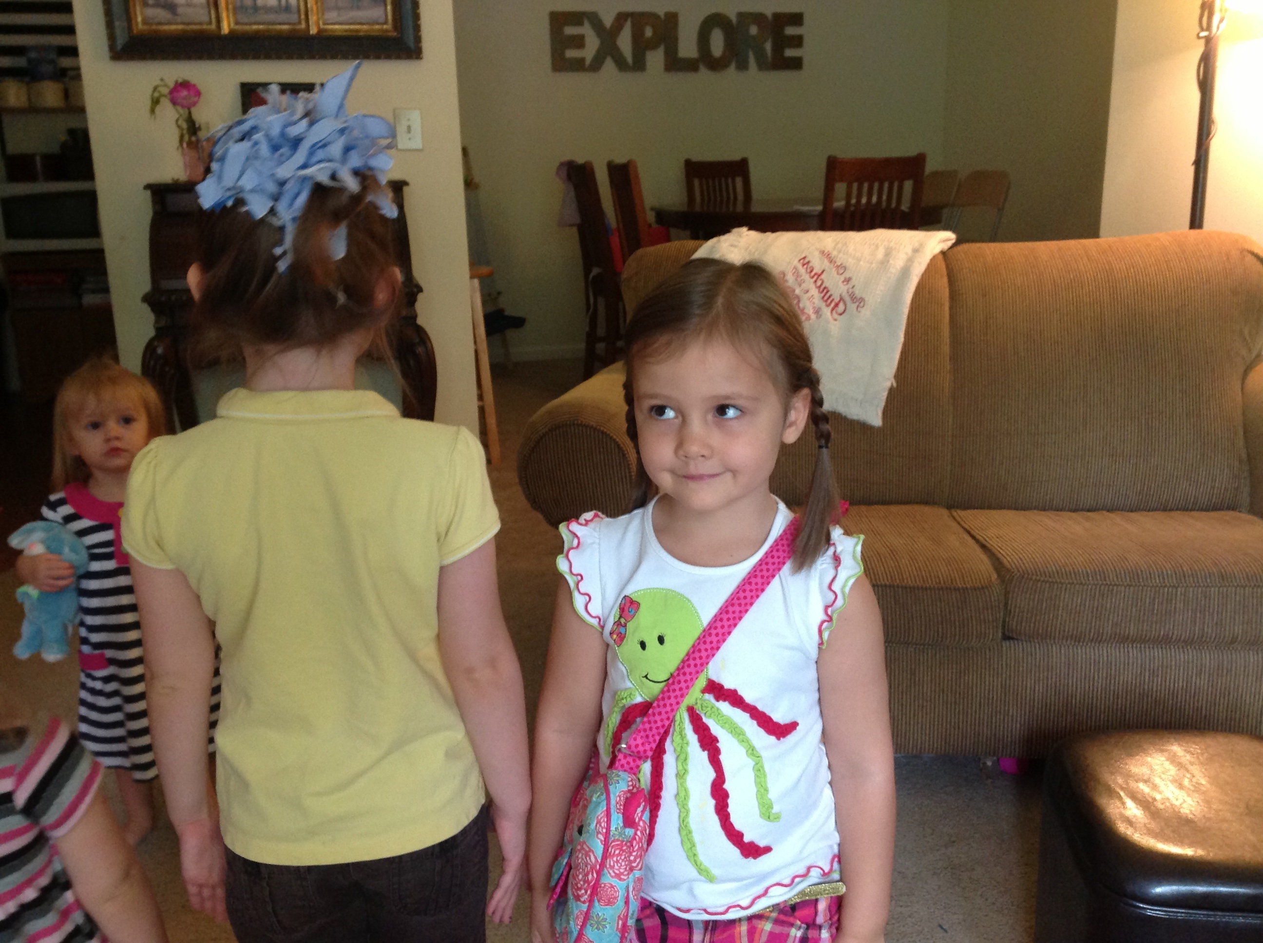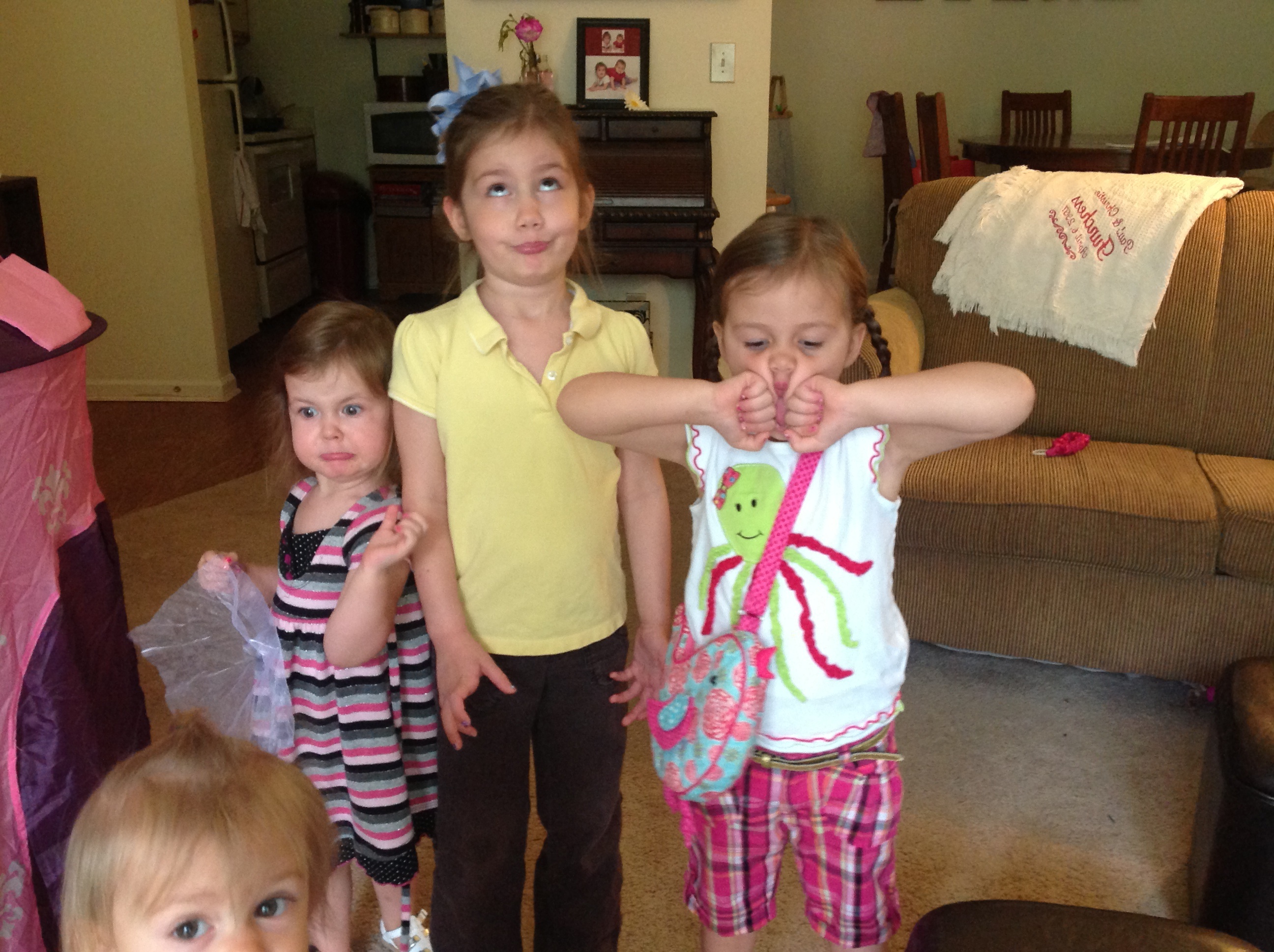 Last time we were at Nana’s house she gifted us with a huge bag of clothes! Which we couldn’t look through for several days! And the girls were going crazy! But I didn’t want to have a mess at an inopportune time! (and do they ever make a mess trying on all those clothes… but they have fun so it’s all good)