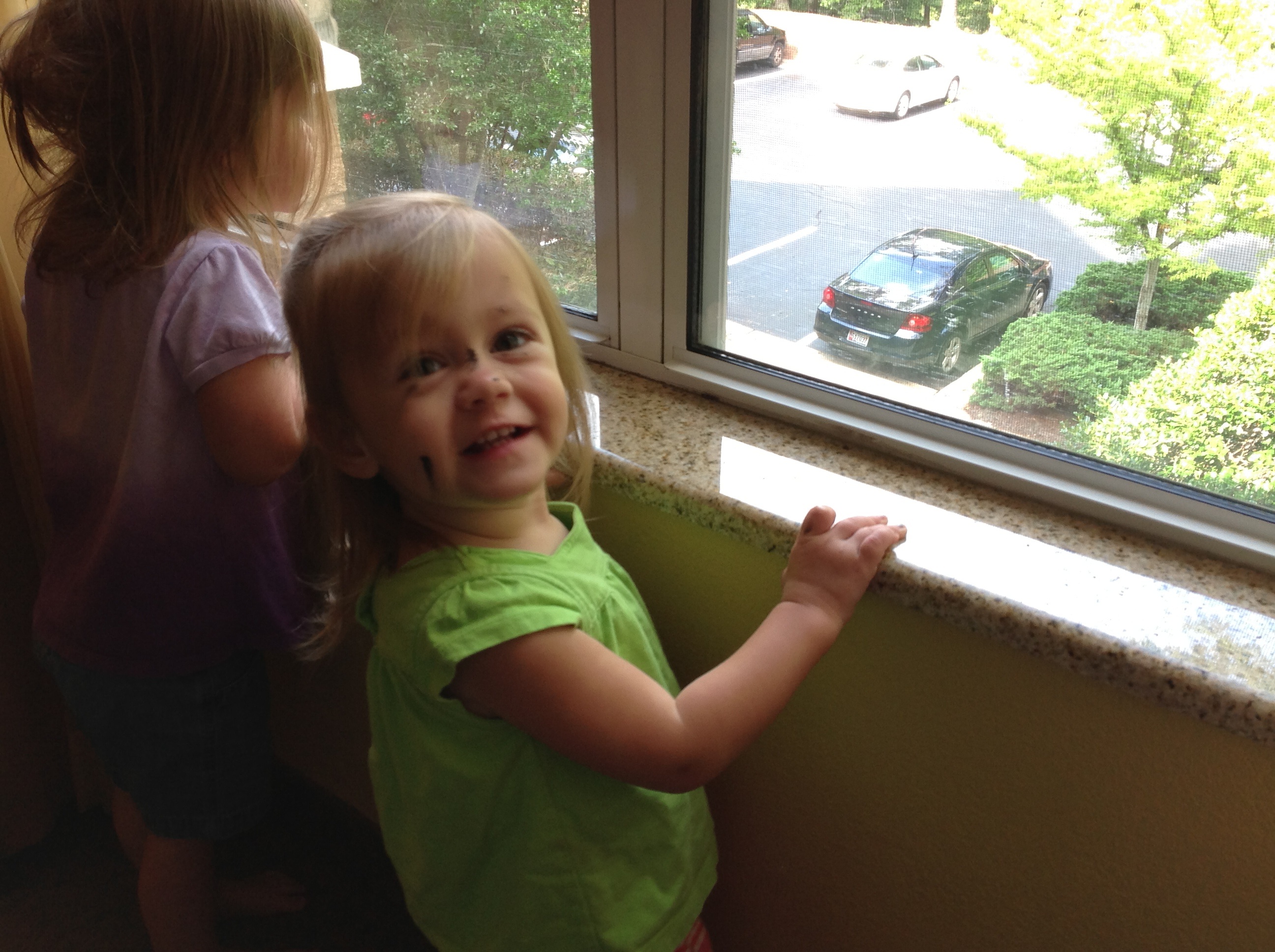 Last time we went, I happened to have a brush in my purse because we rushed out so early and I hadn’t had time to really get them ready. So we played beauty shop; I fixed their hair while talking to them in my awful imitation Brooklyn accent. They thought it was hilarious. (If they only knew it was helping me stay sane as well… )