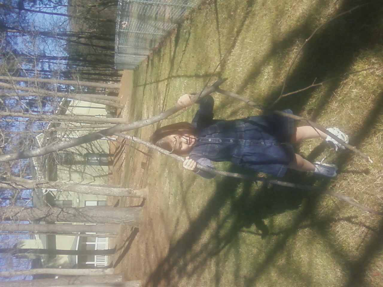 And two more fun pics from my phone: Sophia showing me that she could lift this giant branch,