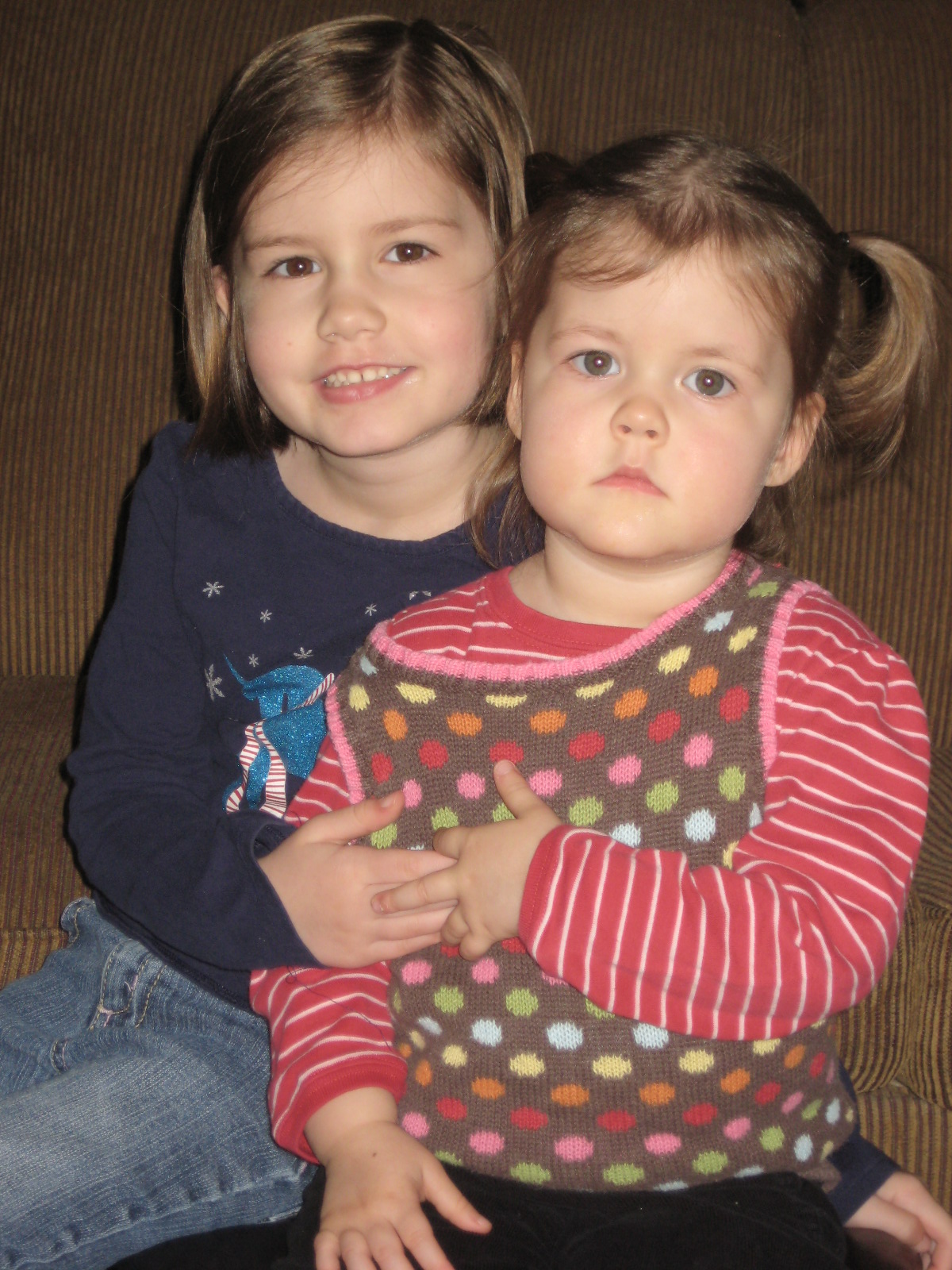 Gracie and Mckayla sitting on the kitchen floor reading one of Sophia’s birthday cards. Gracie still wears her coat and hood every chance she get. This picture is particularly fun because she’s also carrying a pig in a carseat on her back (another one of her favorite activities) = )