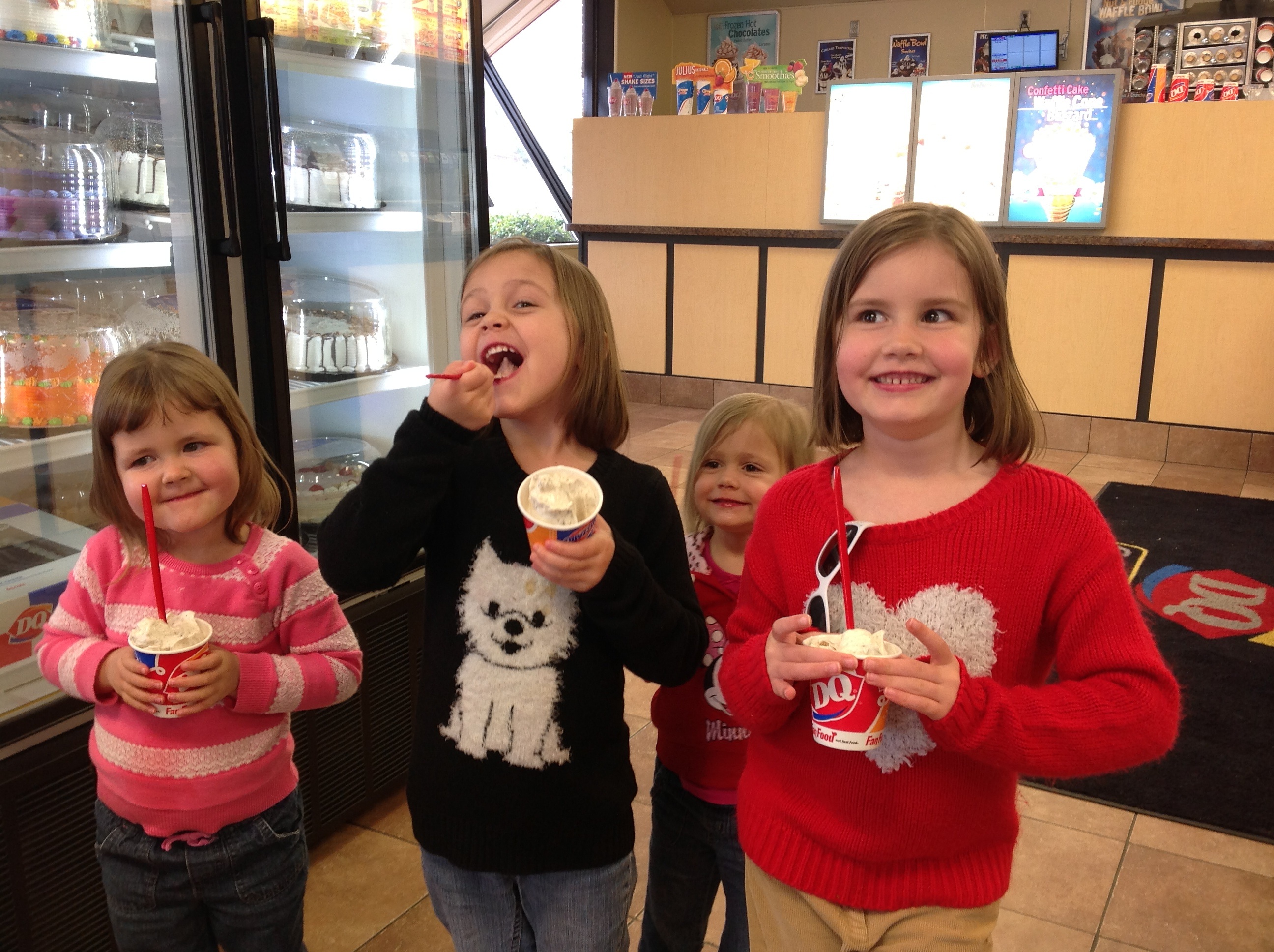 Our first picture here is at a Dairy Queen. We actually just stopped to use the restroom, but by the time all of us girls were done, Daddy was waiting for us with ice cream. Yay!